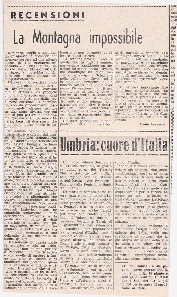 Paolo Ferrario, La Montagna impossibile, in Ul Tivan, 12 novembre 1966 (recensione del libro di Pierluigi La Terza)