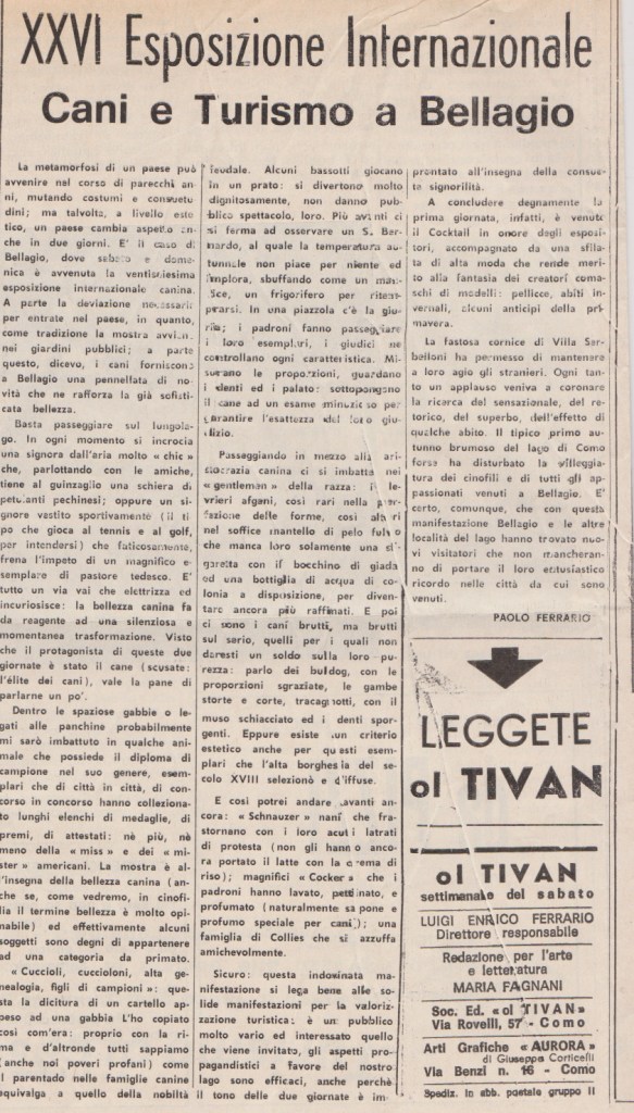 Paolo Ferrario, Cani e turismo a Bellagio. XXVI Esposizione Internazionale, in ul Tivan, 1967