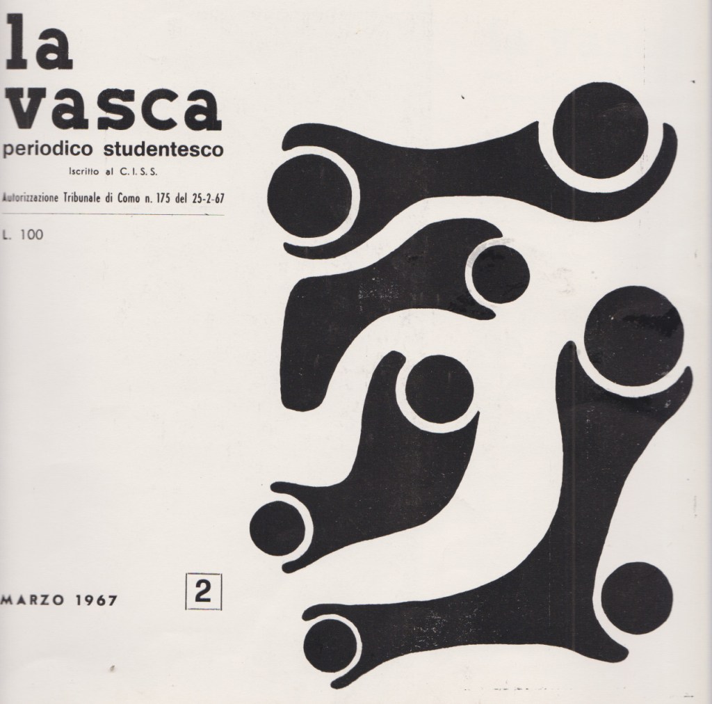LA VASCA, periodico studentesco, n. 2, marzo 1967 (sede presso il “Club Esperia 1919” via Diaz 26, Como). Copertina di Antonio Albertini