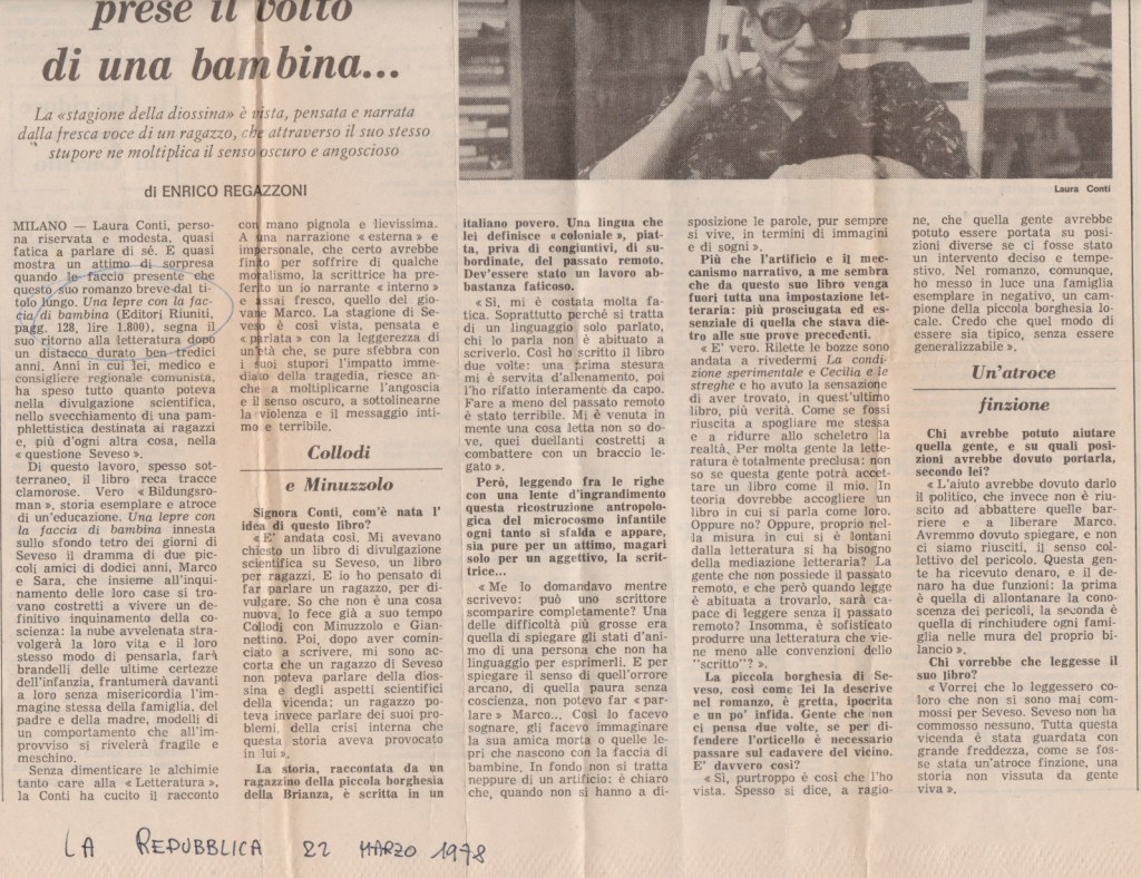Laura Conti, Una lepre con la faccia di bambina, Editori Riuniti, 1978. Con la sua dedica: “A Paolo in ricordo di un bel pomeriggio piovoso”