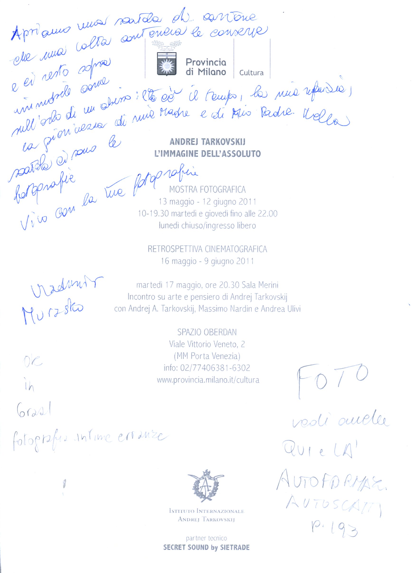 Andrej Tarkovskij, Mostra fotografica L’immagine dell’assoluto, Milano