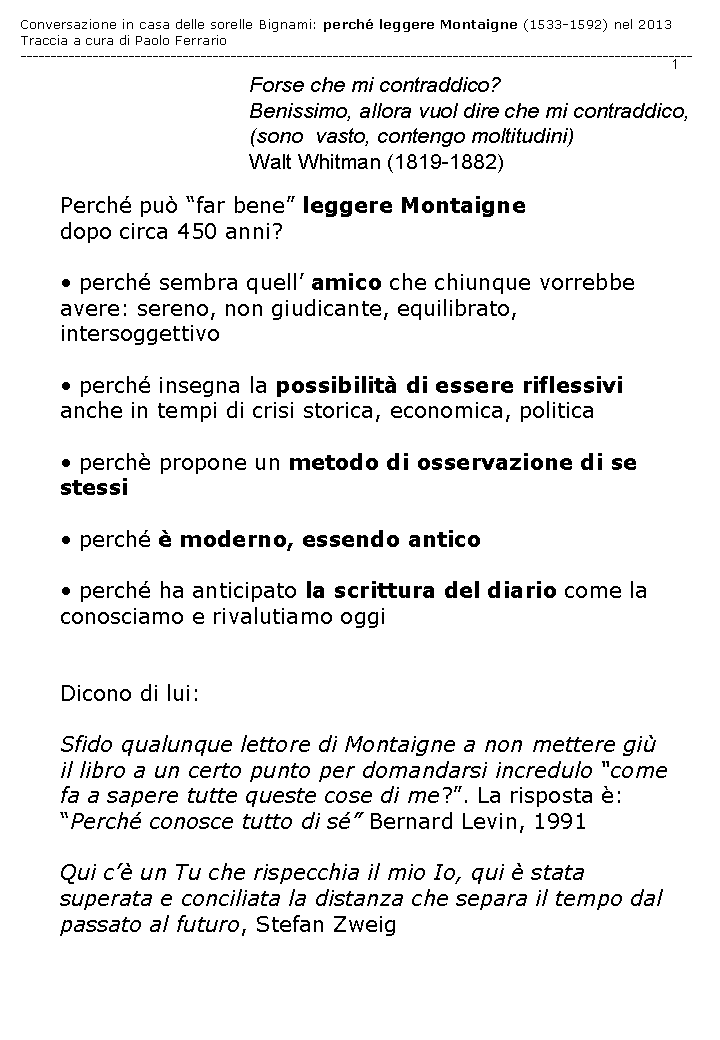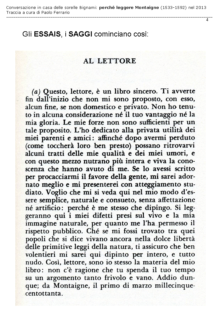 DESIDERO RIDIRTI SUBITO CHE IL TUO E’ STATO UN MODO GIUSTISSIMO PER AVVICINARE IL NOSTRO GRUPPO COSI’ TANTO ETEROGENEO A MONTAIGNE,.