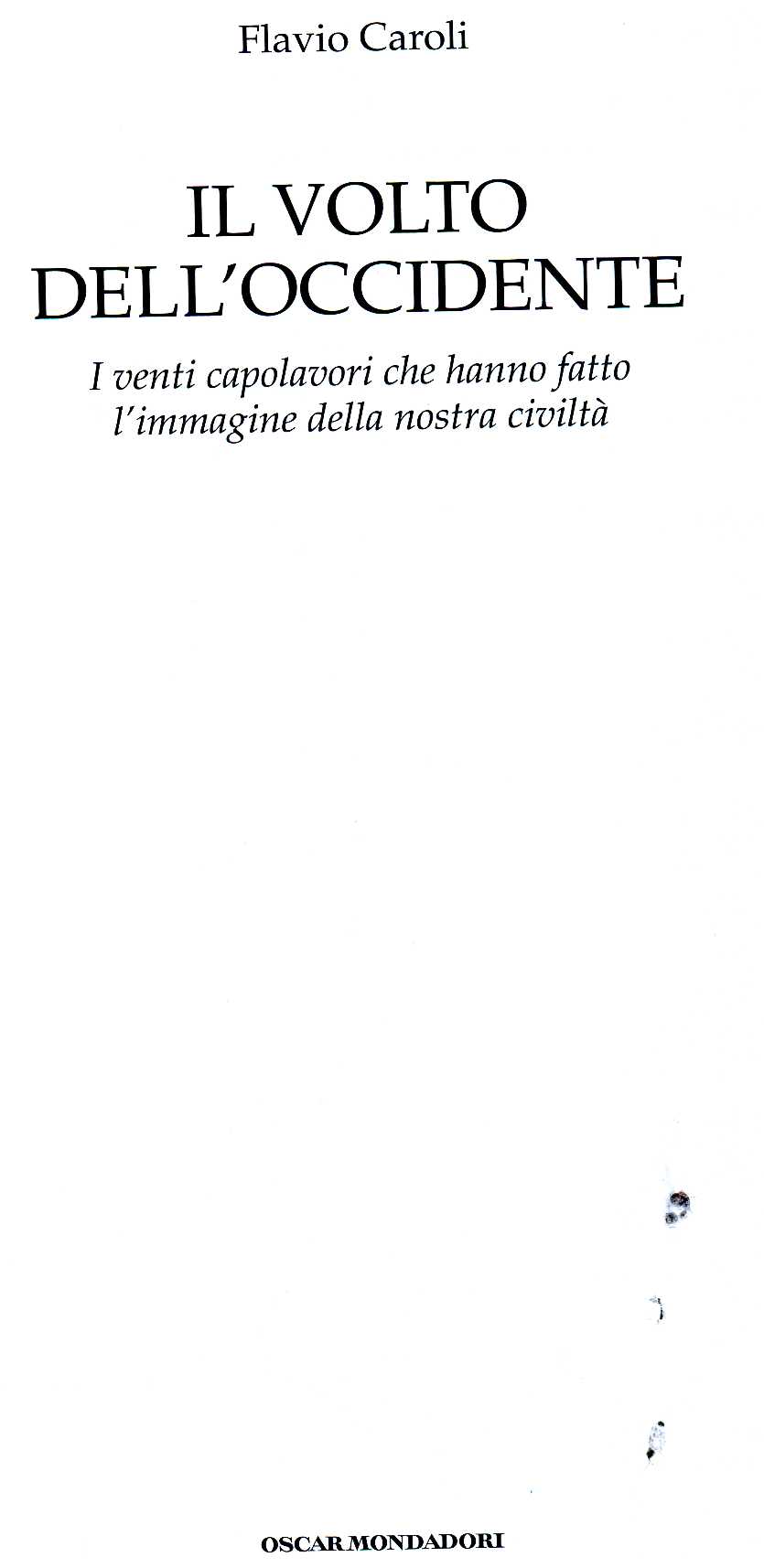 Caroli Flavio, IL VOLTO DELL’OCCIDENTE, i venti capolavori che hanno fatto l’immagine della nostra civiltà, Mondadori 2013