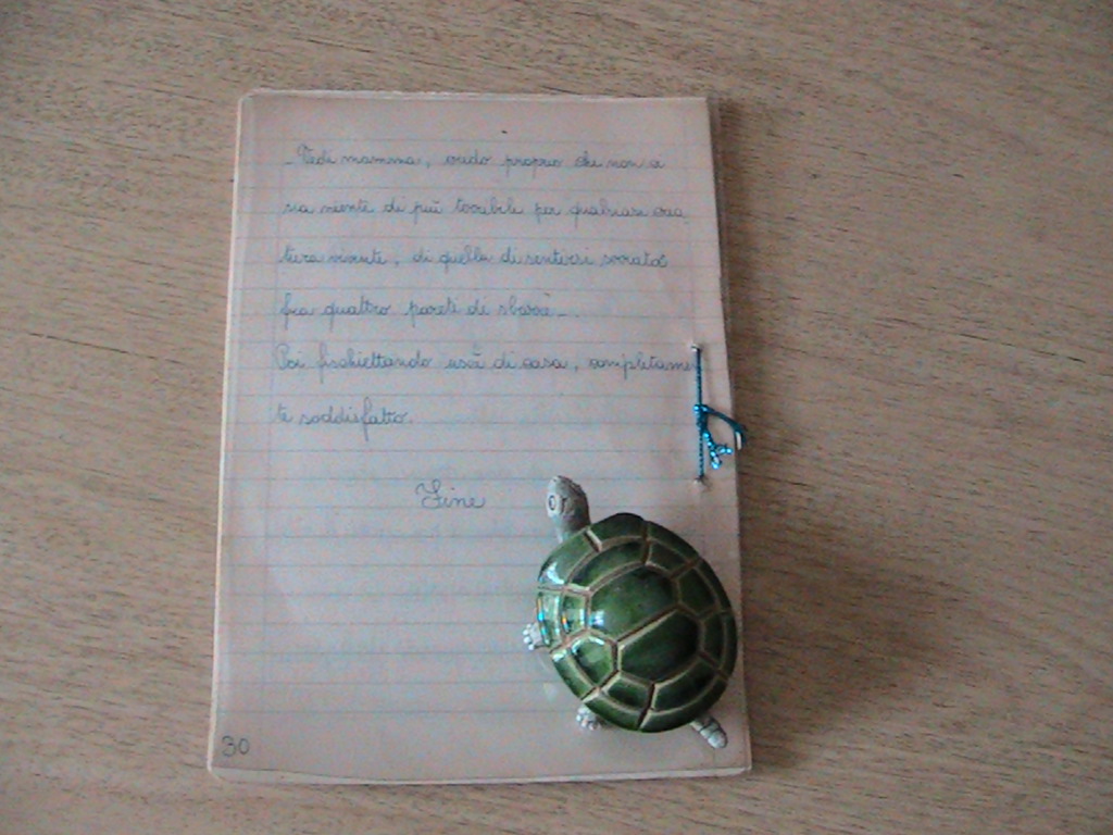 La passione della scrittura continuava attraverso le ricerche proposte dalla scuola elementare, lo svolgimento dei temi, i riassunti delle letture a casa. Sono grata alla mia maestra Adriana (che ormai non sarà più abitatrice di questa terra) per la sua severità, la sua rigorosità, la sua instancabile solerzia nell’insistere sulla ricchezza di vocabolario e sull’uso corretto della grammatica attraverso valanghe di compiti per le vacanze che riempivano quotidianamente i pomeriggi estivi.