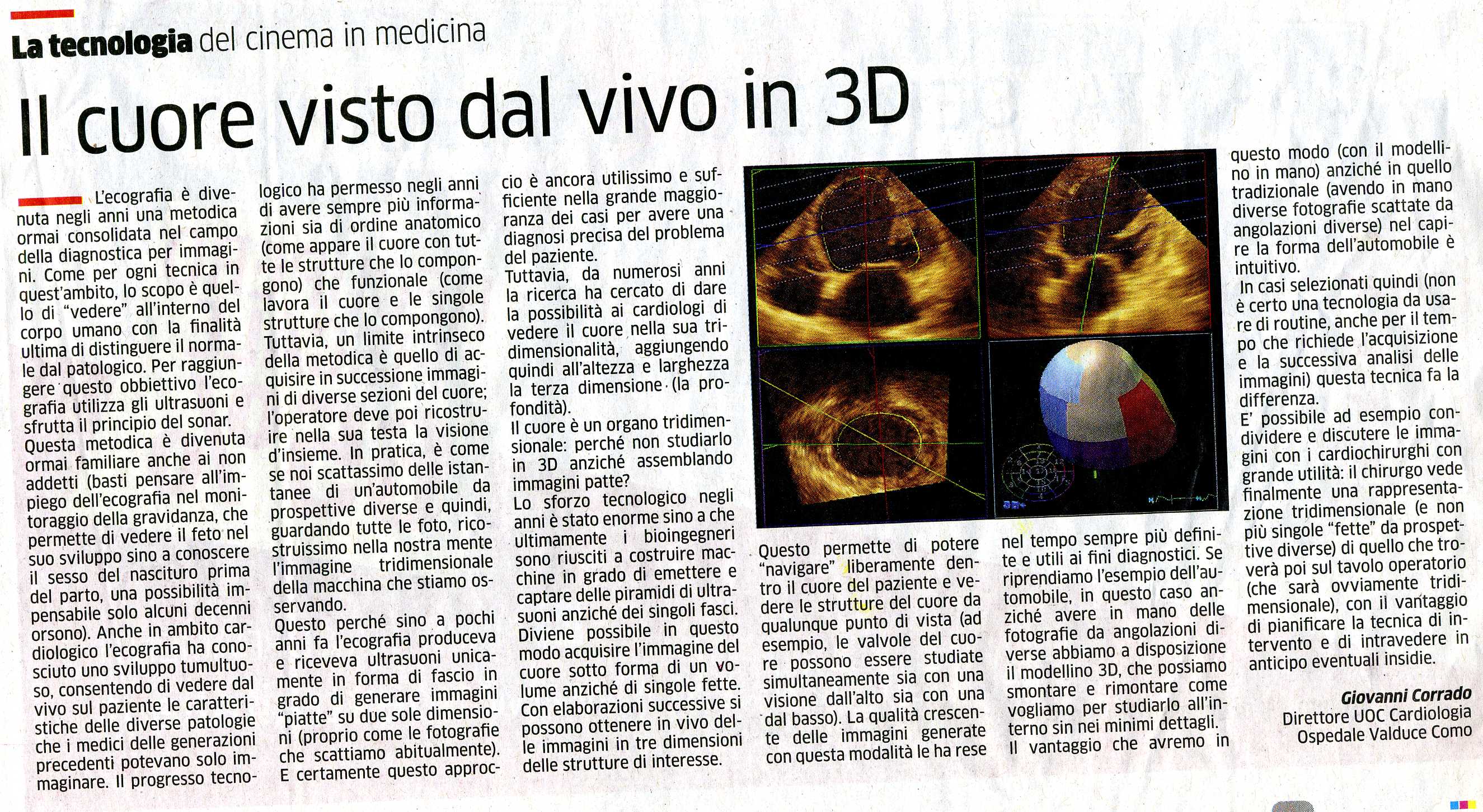 il cuore visto dal vivo tramite ecografia, di Giovanni Corrado, La Provincia, 5 maggio 2015