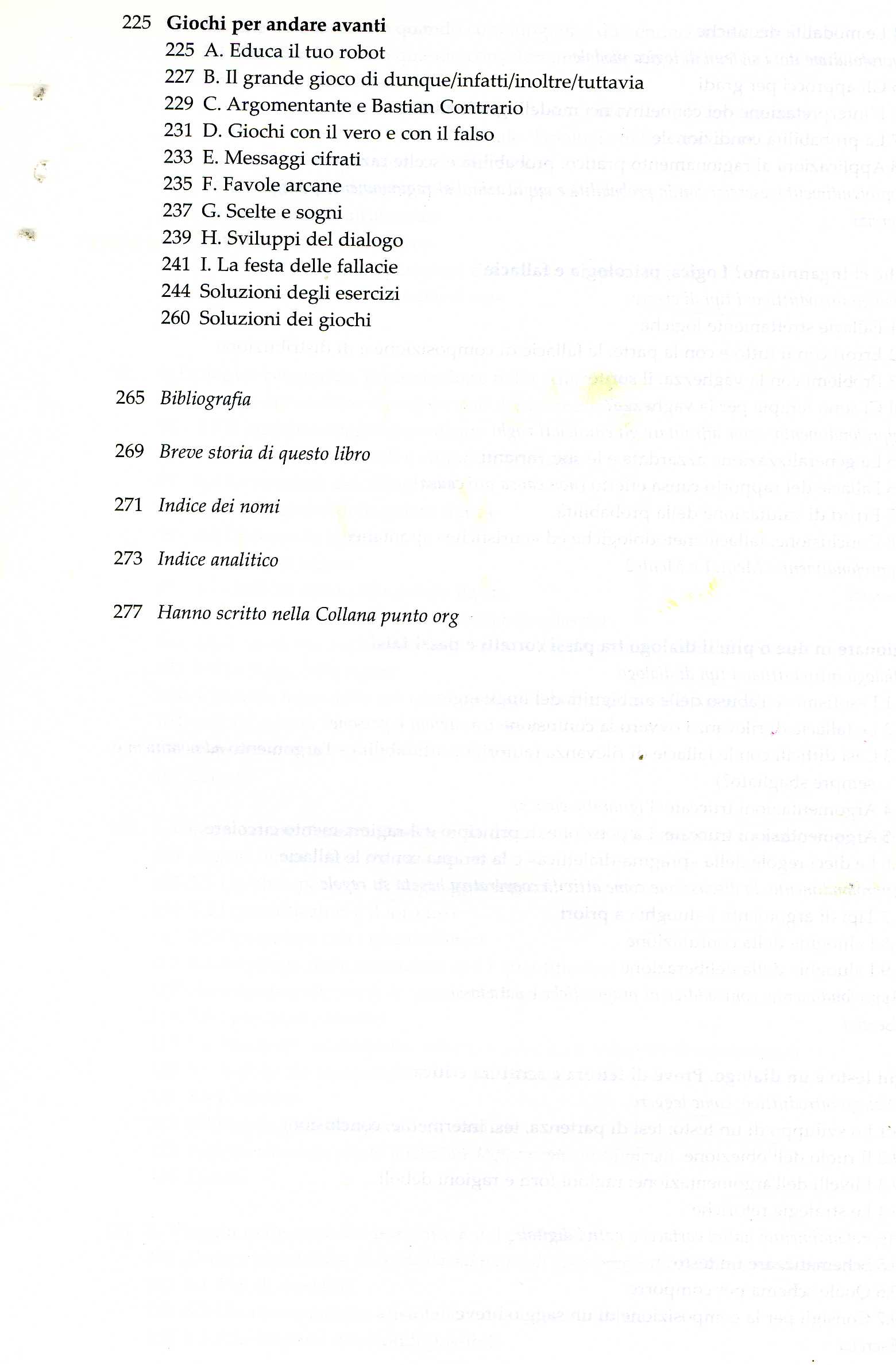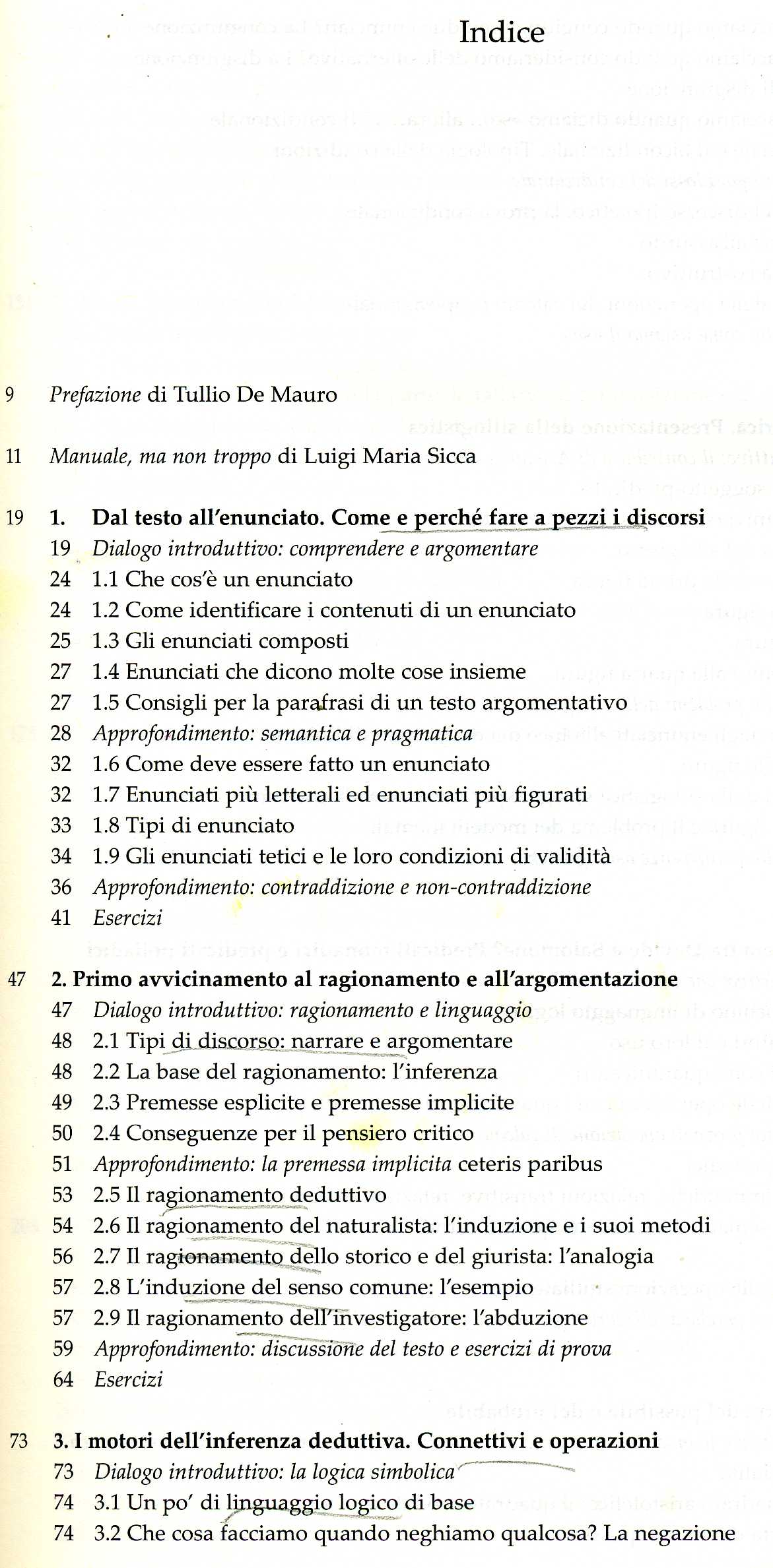 Il Manuale di educazione al pensiero critico si articola in nove capitoli, altrettanti dialoghi e diciotto unità di apprendimento piane e didascaliche, che ascendono progressivamente dalla comprensione degli enunciati all’analisi del ragionamento fino alle dinamiche del dialogo orale o scritto.