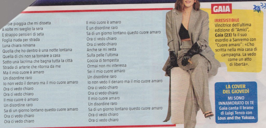 GAIA canta ‘Cuore amaro’ al Festival di Sanremo 2021 (3 marzo). Video youtube