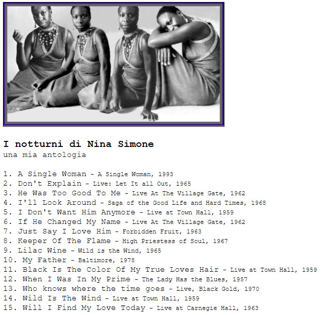 I NOTTURNI DI NINA SIMONE, antologia youtube a cura di Paolo Ferrario