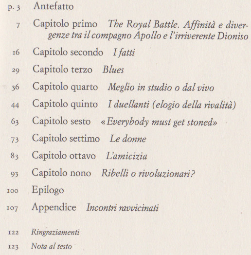 CASTALDO Gino, Beatles e Rolling Stones. Apollinei e dionisiaci, Einaudi, 2022. Indice del libro