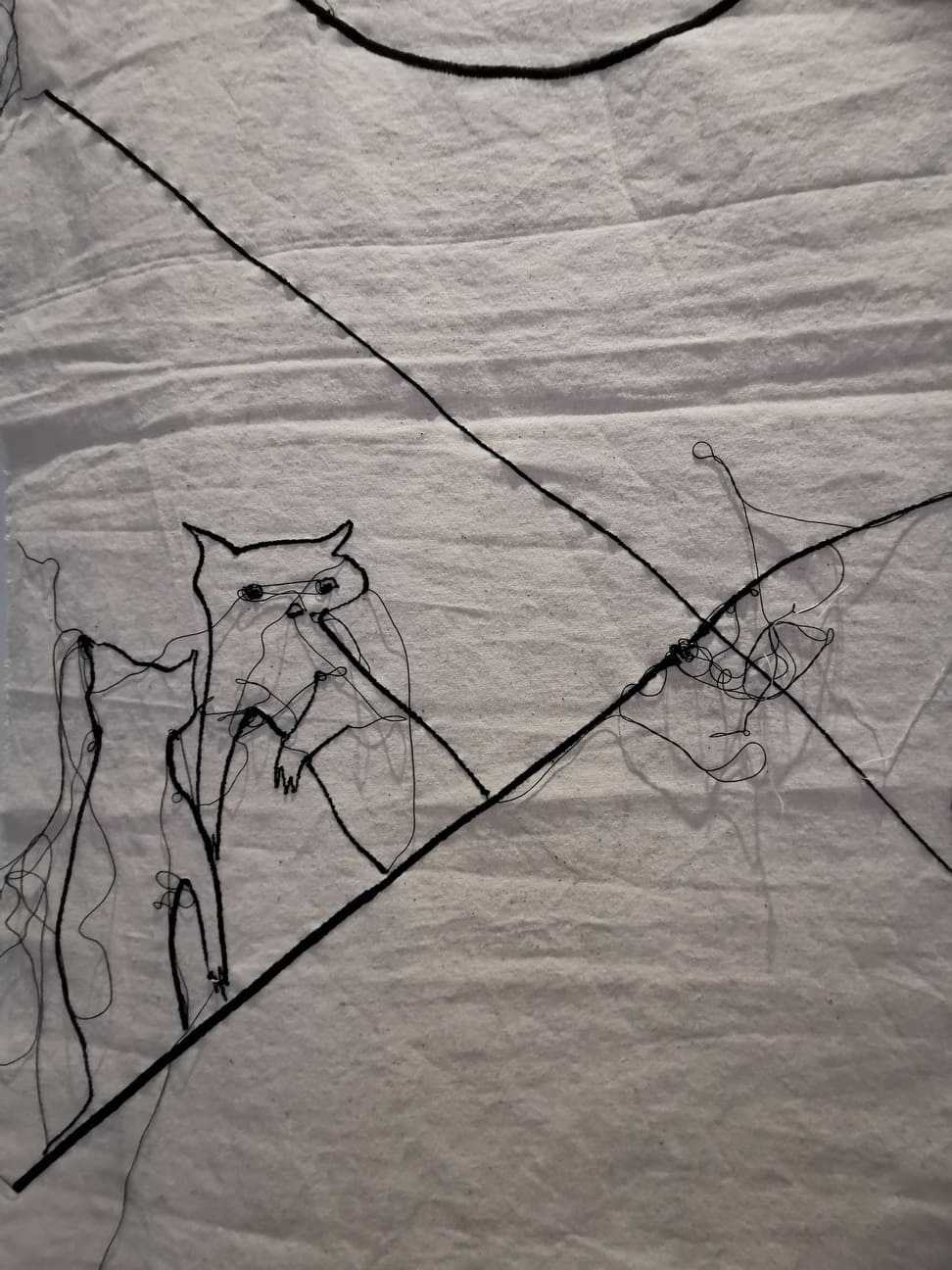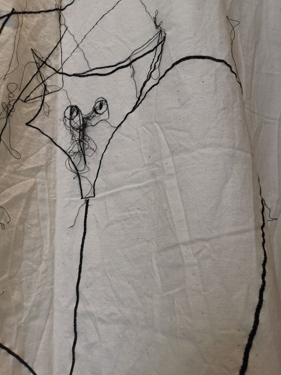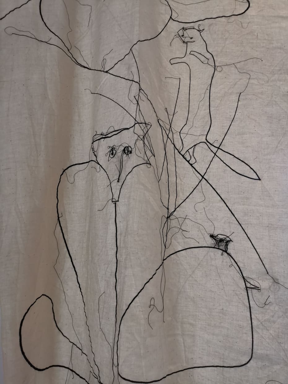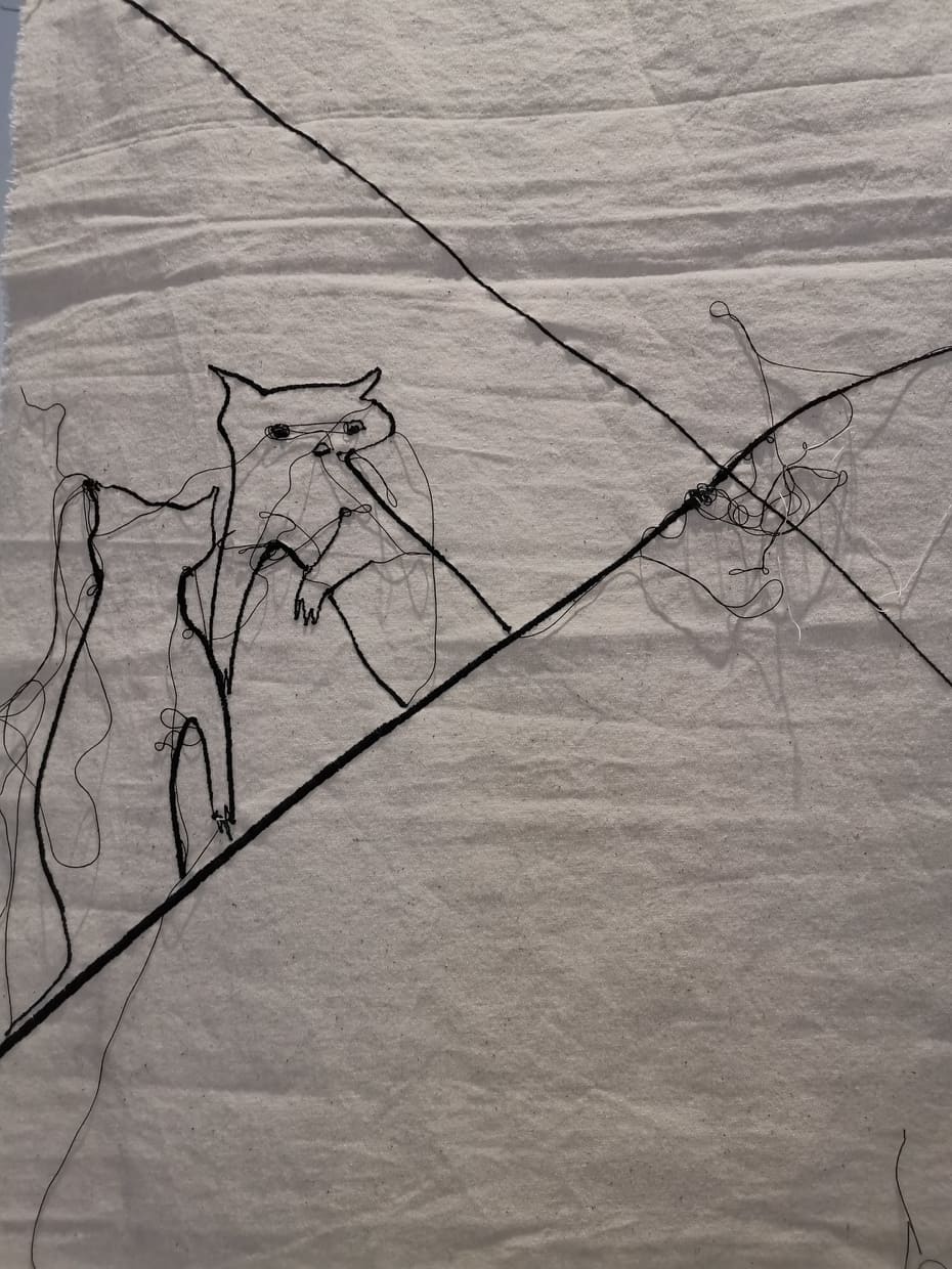Me l’aveva segnalata una mia amica innamorata di quest’artista sarda e così ieri sono andata con lei a milano a vedere un’inedito della Lai “Legarsi alle montagne” nonchè l’illustrazione cucita di una fiaba.