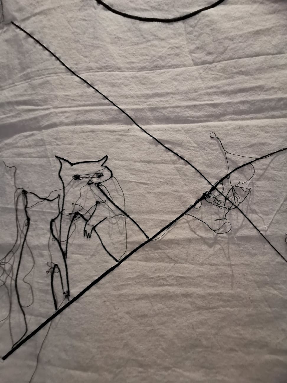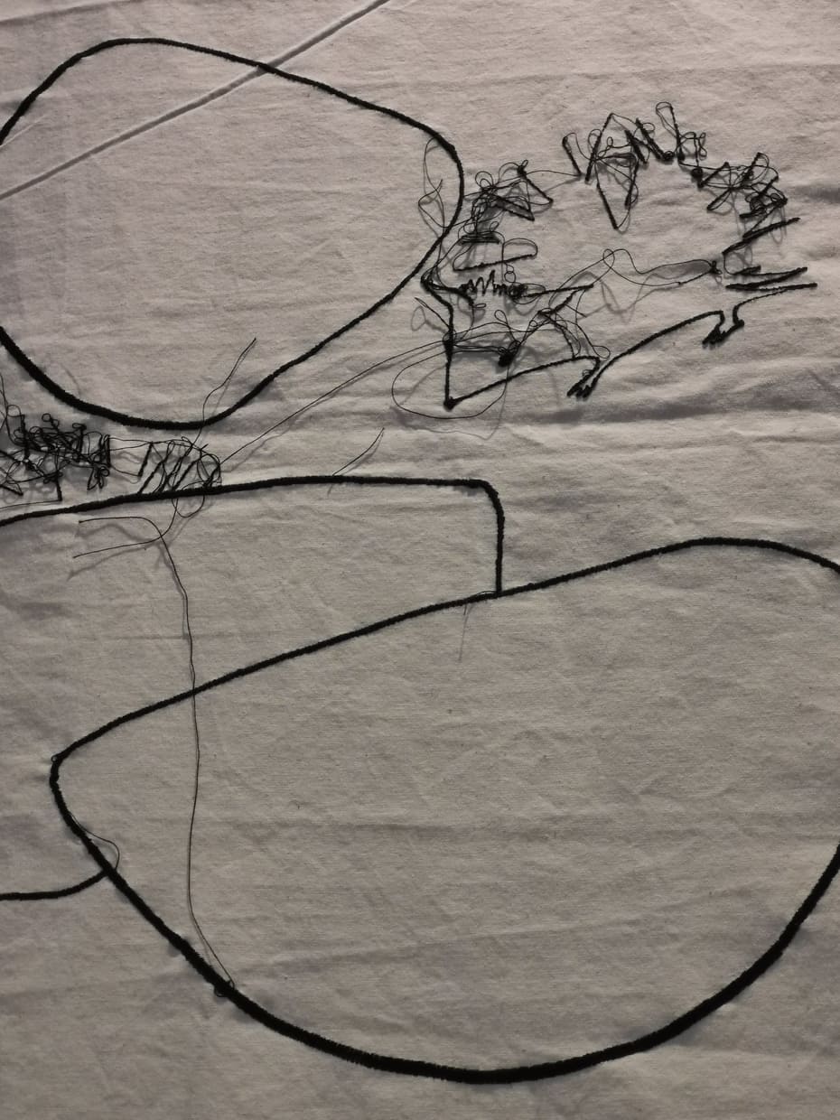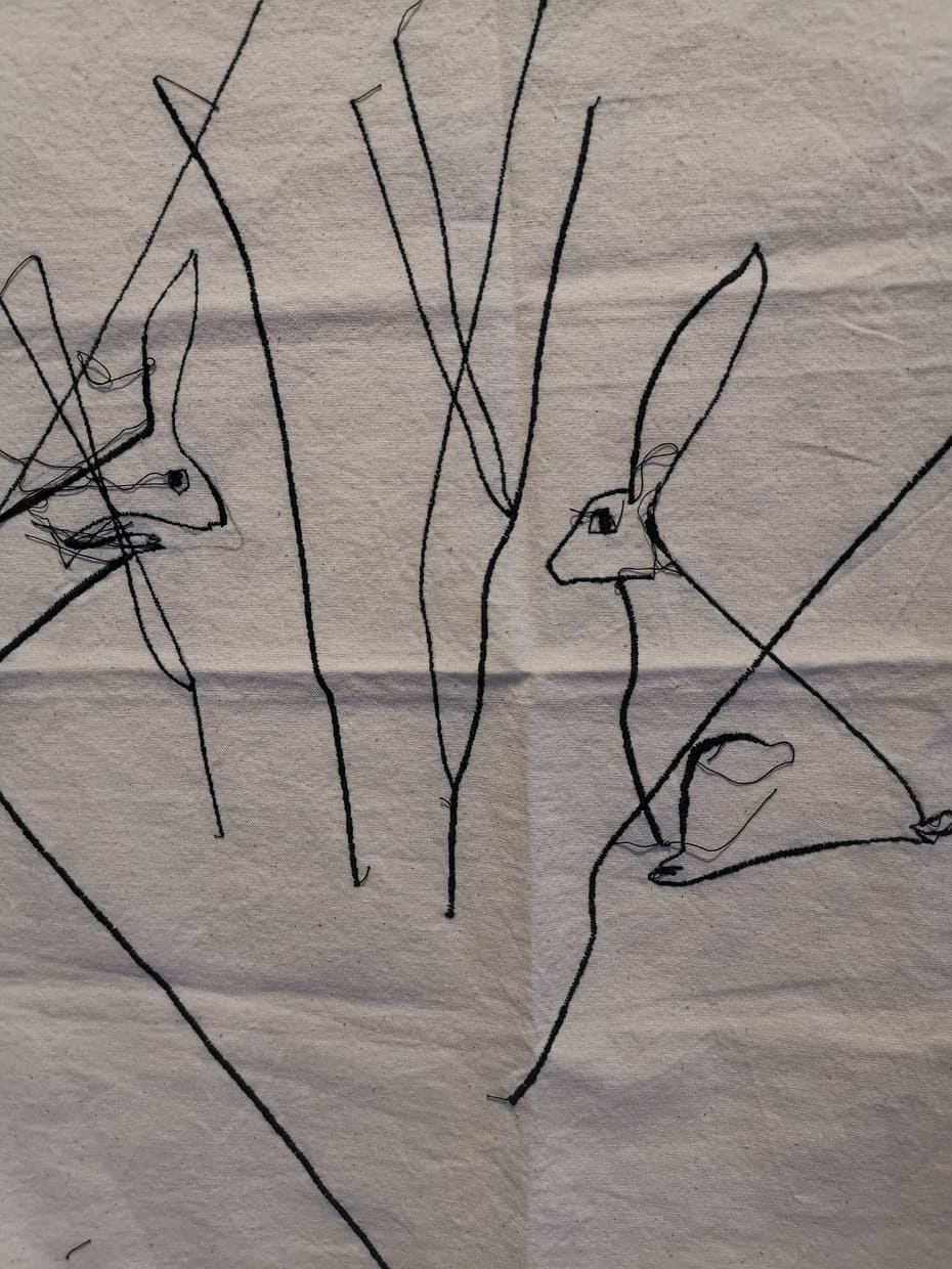 Me l’aveva segnalata una mia amica innamorata di quest’artista sarda e così ieri sono andata con lei a milano a vedere un’inedito della Lai “Legarsi alle montagne” nonchè l’illustrazione cucita di una fiaba.