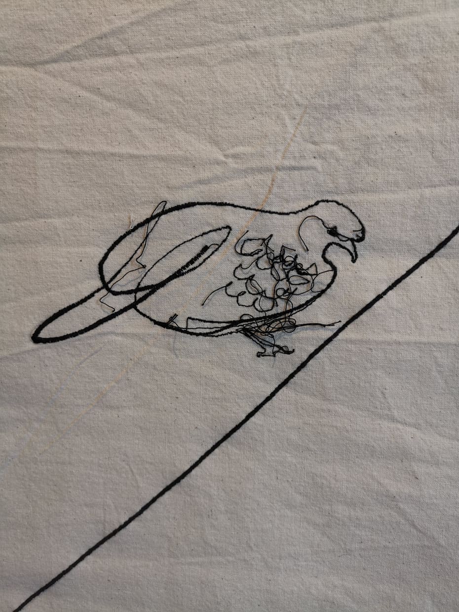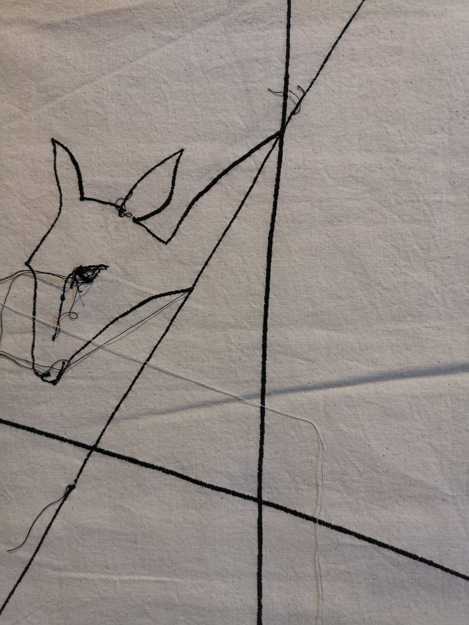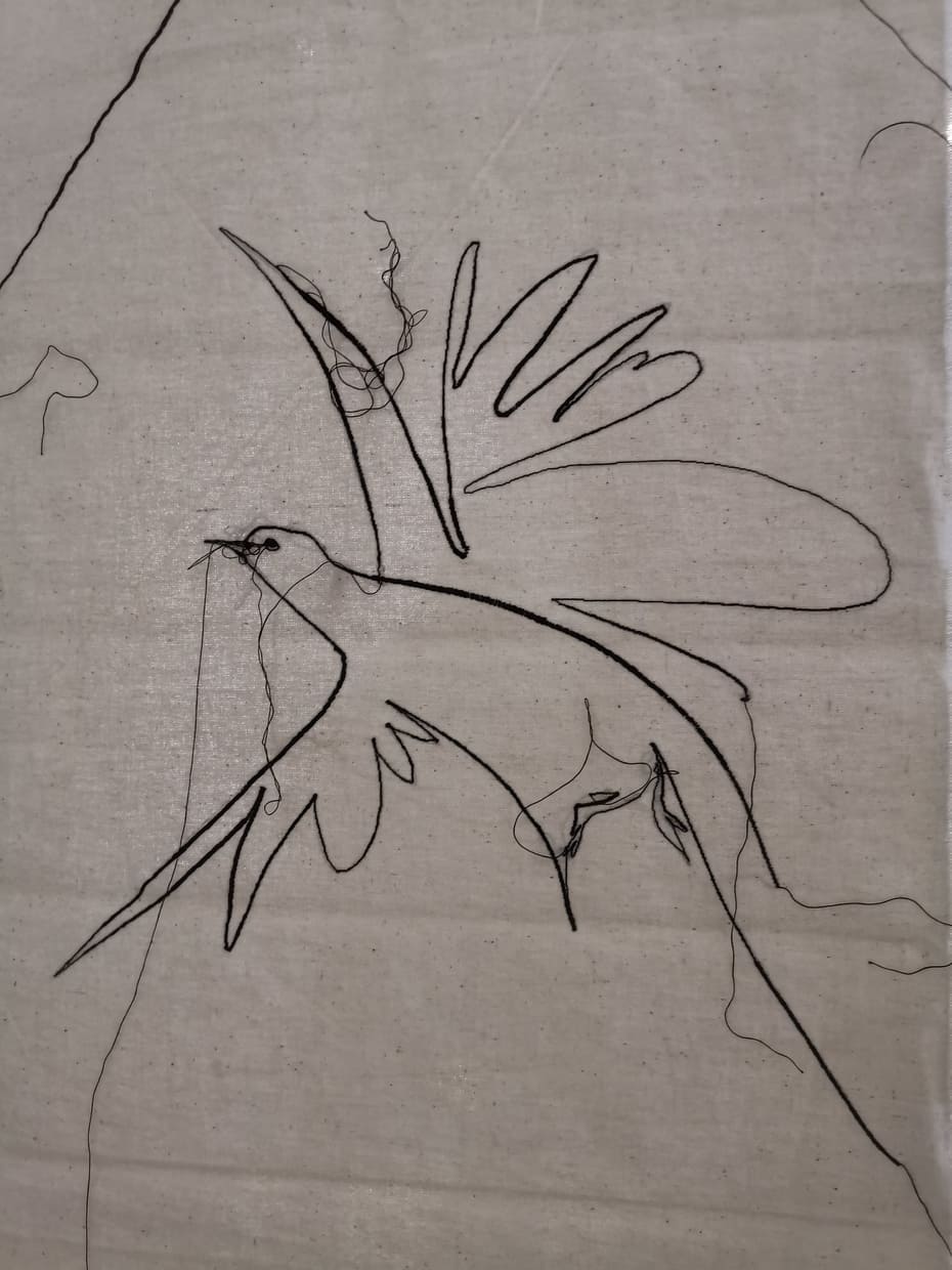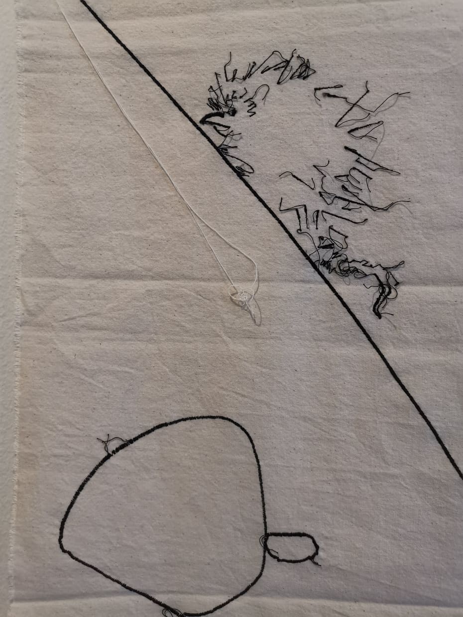 Me l’aveva segnalata una mia amica innamorata di quest’artista sarda e così ieri sono andata con lei a milano a vedere un’inedito della Lai “Legarsi alle montagne” nonchè l’illustrazione cucita di una fiaba.