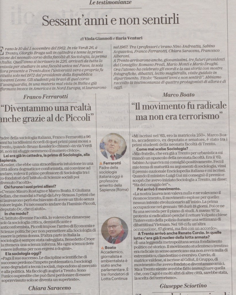 L’anniversario. Quando Trento sfidò l’Italia con Sociologia – la Repubblica