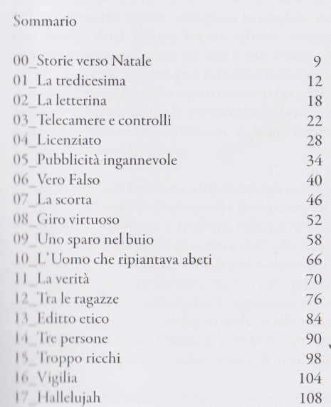 Monizza Gerardo, Storie verso Natale. Racconti veri di illusioni e delusioni, Nodo libri, Como, 2022. Indice del libro