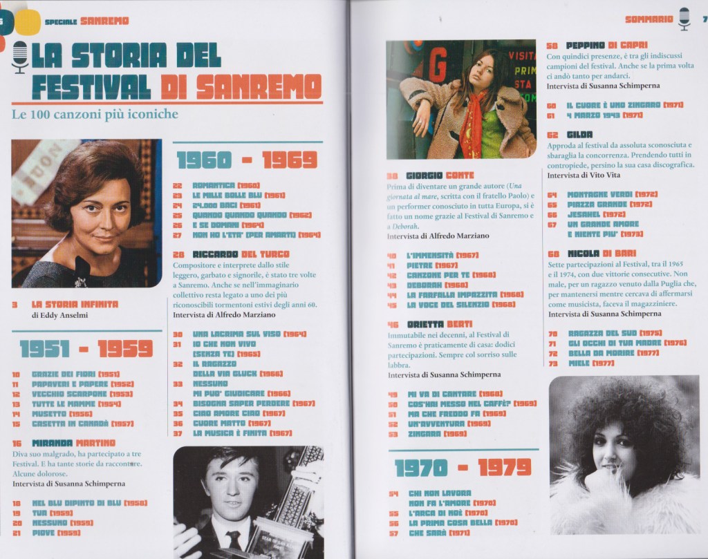 Autori Vari, La storia del Festival di Sanremo. Le 100 canzoni più iconiche (1951-2022), Sprea S.p.A, 2023. Indice del libro