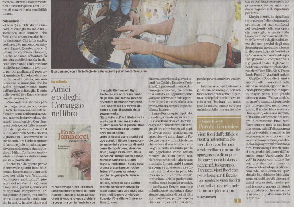 Ecco tutto qui, dal titolo di una canzone contenuta in Foto Ricordo, album del 1979, è la storia appassionata di una vita unica e irripetibile, dove l’artista e l’uomo Enzo Jannacci sono fotografati e raccontati da chi lo ha visto e conosciuto da vicino, sul lavoro, tra gli hobby, accompagnandone la carriera e le avventure di tutti i giorni.