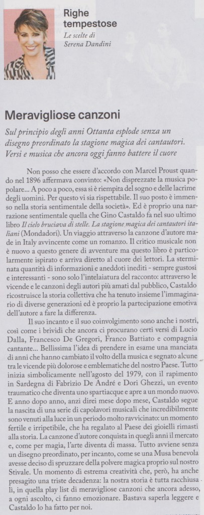 Castaldo Gino, Il cielo bruciava di stelle. La stagione magica dei cantautori, Mondadori, 2023. Indice del libro