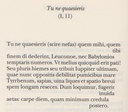 “Noi parliamo e la rapinosa vita è già fuggita. Godi oggi la luce, la futura credimi è niente”