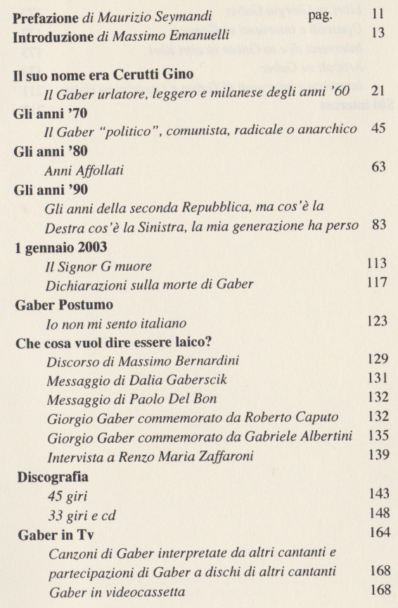 Massimo Emanuelli, Il suo nome era GIORGIO GABER. Storia del signor G, Greco&Greco editori, Milano, 2003
