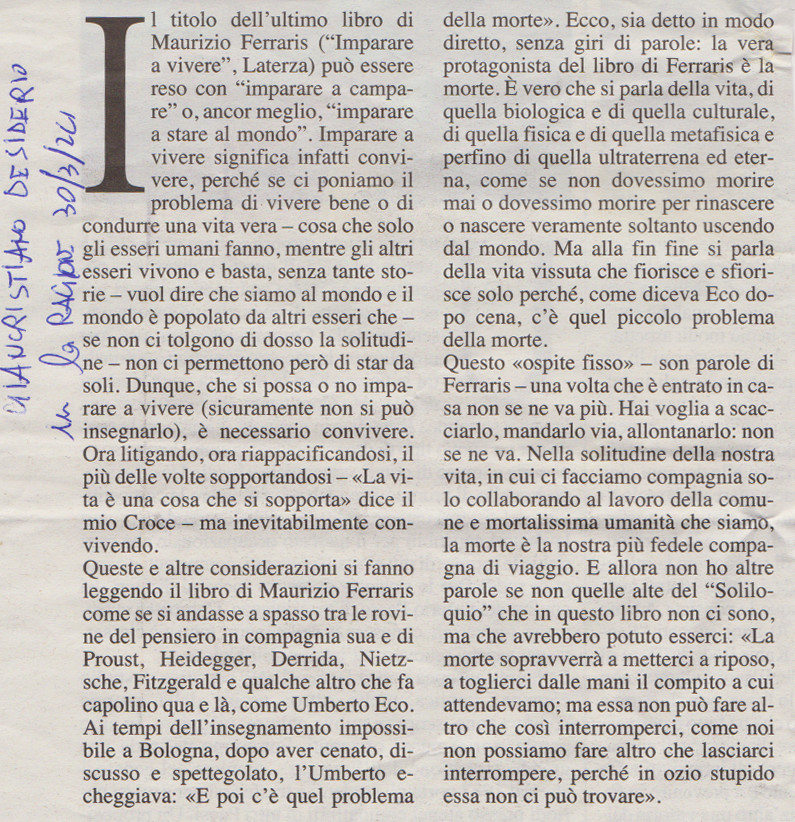 È da un inciampo che il filosofo Maurizio Ferraris parte per ragionare attorno all’esistenza, alla stratificazione di esperienze e memorie che sono il modo in cui ciascuno di noi impara a vivere.