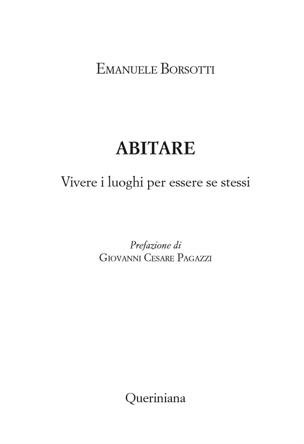 Abitare. Vivere i luoghi per essere sé stessi è un libro di Emanuele Borsotti pubblicato nel 2024 da Editrice Queriniana, all’interno della collana “Spiritualità”547. L’opera affronta la tematica dell’abitare non solo come esperienza fisica degli spazi, ma come percorso esistenziale e spirituale, in cui il luogo diventa specchio e occasione di crescita personale.