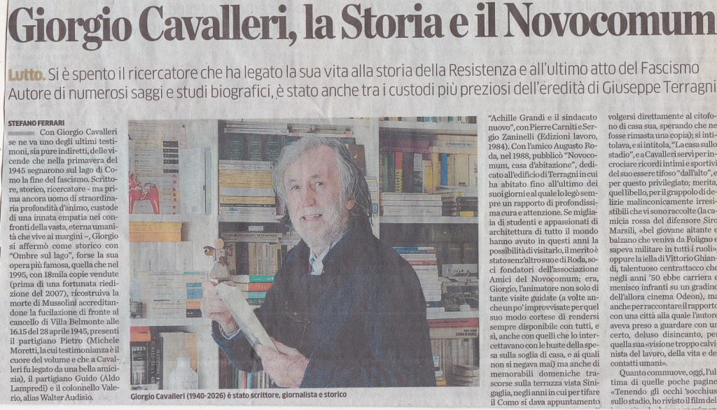 Giorgio Cavalleri è stato uno dei più importanti storici e intellettuali comaschi, specializzato nello studio della Resistenza, della Seconda guerra mondiale e degli ultimi giorni del fascismo sul Lago di Como. È scomparso il 7 gennaio 2026 all’età di 85 anni ComoZero EspansioneTv La Provincia di Como.